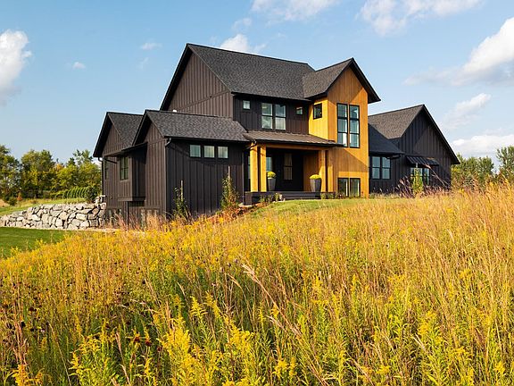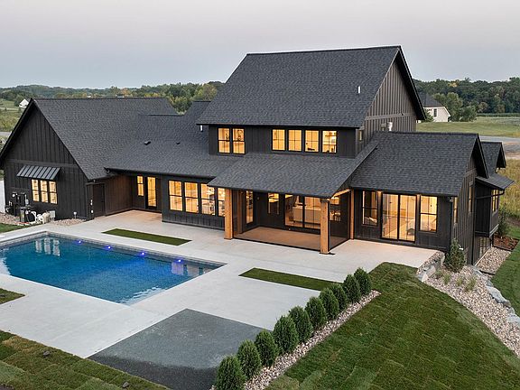 This striking minimalist design sits on a 3-acre picturesque property in our distinguished Reverence neighborhood. The modern farmhouse-inspired architecture is carefully curated with an edge, showcasing steeply pitched gables, metal accents, and a bold, dark exterior with natural wood elements. Scandinavian design influenced the interior, with a minimal, clean approach that combines beauty and functionality. Indoor-outdoor entertaining was emphasized through the design, pulling in the natural beauty of the land while seamlessly integrating the exterior living spaces and pool area. From the private owners' suite integrated on the main level to the refined finishes throughout, this home will be sure to capture your attention. This home is sure to impress, representing another fine example of the standard of excellence for which Homes by Tradition is known. Contact Chris Rooney Home Experts to start your design-build journey today!