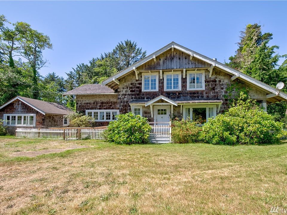 Ocean Front Craftsman! 1st time offered for sale to the public. This 5 bed 2 bath home sits upon almost 2 acres with a secluded beach path. It boasts a butler's pantry, formal dining room, sleeping and open sun rooms, 2 fireplaces, original fir floors and walls with lots of character. Original floor plans from 1913 go with this spectacular home. All with a converted artist studio on the south side.