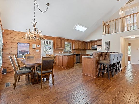 PEACEFUL, QUIET AND PRIVATE LIVING WITH EASY ACCESS TO OKC. 158 ACRES FULLY FENCED WITH ELECTRIC ACCESS GATE. FULLY PAVED ROAD AND DRIVEWAY. BEAUTIFUL LOG CABIN INSIDE AND OUT. COVERED PORCH WITH SWING ALLOWS FOR QUIET MORNING OVERLOOKING THE 11 ACRE POND. HOUSE IS MOVE IN READY. STAINLESS STEEL APPLIANCES, GRANITE COUNTER TOPS, WOOD FLOORS AND OPEN FLOOR PLAN MAKE THE INSIDE JUST AS GOOD AS THE OUTSIDE. PROPERTY ALSO HAS A BARN WITH MULTIPLE ACCESS, PIPED FOR COMPRESSES AIR AND ALSO HAS AN OFFICE SPACE. THERE IS ALSO A COVERED SHED FOR ADDITIONAL TRACTOR STORAGE. GREAT PROPERTY FOR COUNTRY LIVING, ALL KINDS OF HUNTING OR JUST A GREAT GET AWAY SPACE.