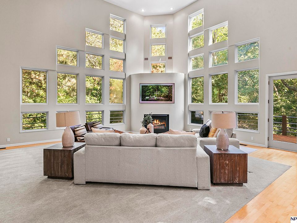 Open House, Sunday, Feb. 16 from 1-3. Looking for a one-of-kind home in Elkhorn that could also be a unique airbnb property or multigenerational living arrangement? This custom built, luxury home, offers unparalleled privacy on a huge 3/4 acre lot in Riverside Hills and is an incredible value. The open main floor flows naturally from the the updated kitchen, to the dining and living room areas with beautiful wood floors and newer carpet. You'll find 20' ceilings and dozens of Pella windows that seamlessly blend indoors with the outdoors. With an impressive deck walkway surrounding the house, the property gives you the choice to enjoy the peaceful scene yourself or share it with friends. 4 beds, 4 baths, oversized 3 car garage and more than 4100 sq ft to spread out. The primary suite has its own fireplace and two walk-in closets. The expansive basement has a 2nd kitchen, guest room, laundry, updated bathroom and a separate entrance. Don’t miss this rare gem!