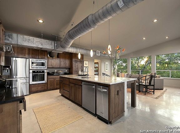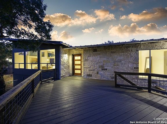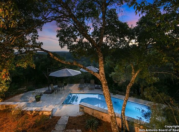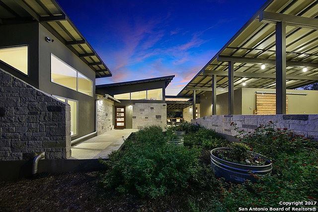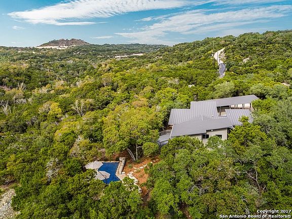 Imagine an urban loft but set high in the trees on 8.5 acres with spectacular Hill Country views & privacy*Unlike anything else*Low maintenance*1-story*Most of lot is for buffer so you can leave it native*Built to LEED specs*Main house 1 BR/2 Bath*Breezeway leads to detached 1/1 guest suite with private entrance*Multiple decks overlook gorgeous pool and miles of vistas*Located in gated Altair*10 min from La Cantera, Dominion CC*No City Taxes*Trade in square footage for a beautiful, easy lifestyle