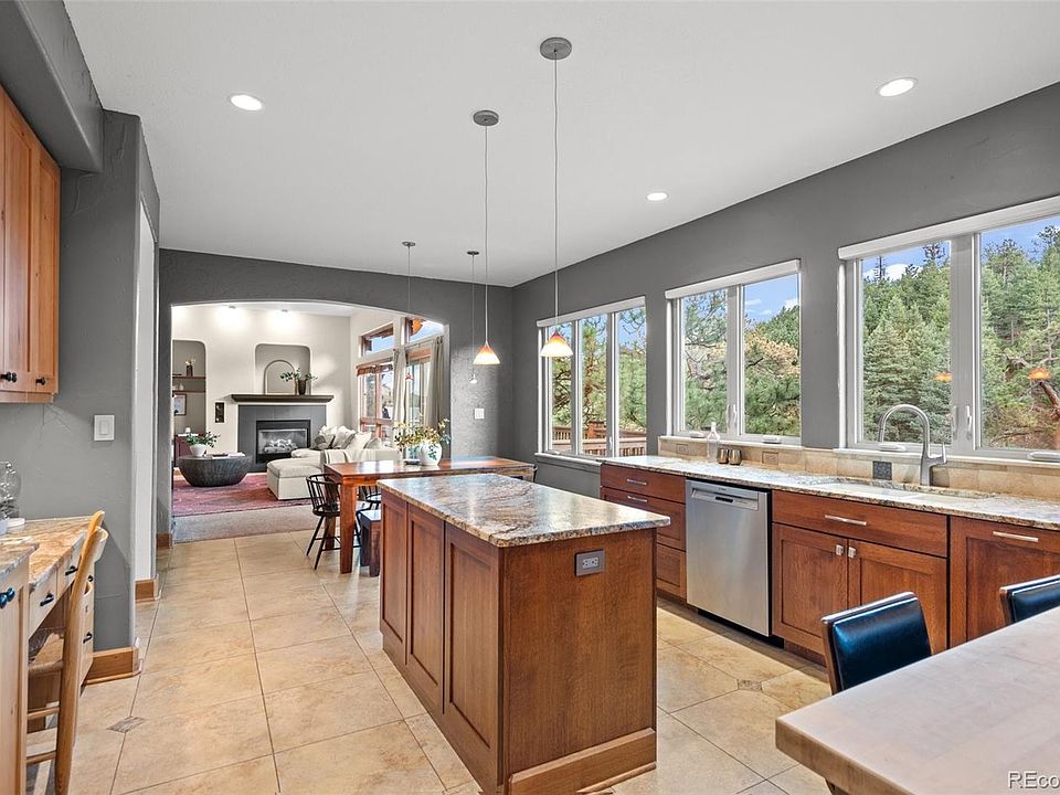 Introducing 22108 Red Hawk Lane! This stunning two-story custom home is nestled in the coveted gated community of Riva Chase. Located at the end of a quiet street, you'll be greeted by welcoming curb appeal and breathtaking views! The main floor boasts a light-filled home office and a living room with large windows. The chef's kitchen is equipped with top-of-the-line Viking and Dacor appliances and boasts abundant cabinet, counter, and multiple prep spaces. As the heart of the home, this kitchen seamlessly flows into the dining room and great room, creating an entertainer's dream layout. A convenient half bathroom and laundry in the mudroom complete this level. Upstairs, retreat to the private primary suite featuring a bright, airy, and timeless five-piece bathroom. Two additional sizable bedrooms share a well-appointed Jack and Jill bathroom. The finished basement is a true showstopper. Fully converted into a permitted accessory dwelling unit, it’s perfect for multigenerational living or mother in law suite. The basement includes a brand new kitchen (2020), a spacious primary bedroom with en suite, a living room, and three additional rooms (media room, sunroom, and yoga space). It also boasts a walkout deck, offering fully private second living quarters. The outdoor space is as impressive as the interior! The upstairs deck features a built-in grill, dining space, and a large sitting area where you can soak in the best views in Golden. The home also includes an attached three-car finished garage. Enjoy mountain living without the hassle—just minutes to I-70, 20 minutes to Denver, 10 minutes to Red Rocks Amphitheatre, and less than 15 minutes to grocery stores, Colorado Mills Mall, a movie theater, and numerous restaurants. Also, less than an hour from ski resorts! Riva Chase is highly sought after for its impeccable maintenance, including winter snow removal. The neighborhood features three ponds for fishing, gorgeous walking trails, and a playground. Welcome home!