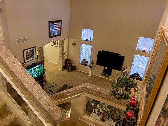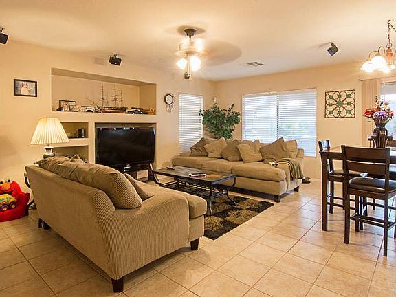 Move in ready highly upgraded 4bd home on the largest fully landscaped lot in the subdivision. Greenbelt adjacent to you with walking path and Mountain views on the end of a Cul-De-Sac! Backyard is an oasis with self cleaning play pool+ waterfall w/remote multi-color led lighting and pool features, covered patio, Built in BBQ, stereo + speakers, grass, storage shed, RV Gate and LOTS of yard left to enjoy. 3 car insulated garage w/epoxy floor, 220v outlet, wall AC unit and extended driveway. Inside features Granite Counter-tops w/kitchen island, separate formal Dining + Family Room, surround sound, extra large master suite w/separate shower, tub&double sinks. Built on 10x10 bonus room w A/C on back patio to use as you wish! Save extra thousands because the CFD is paid off! Traditional Sale.