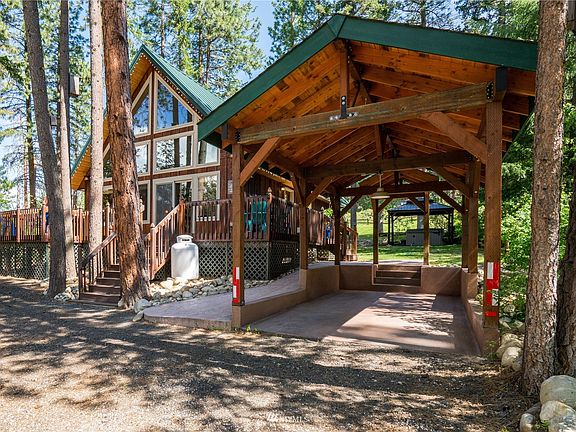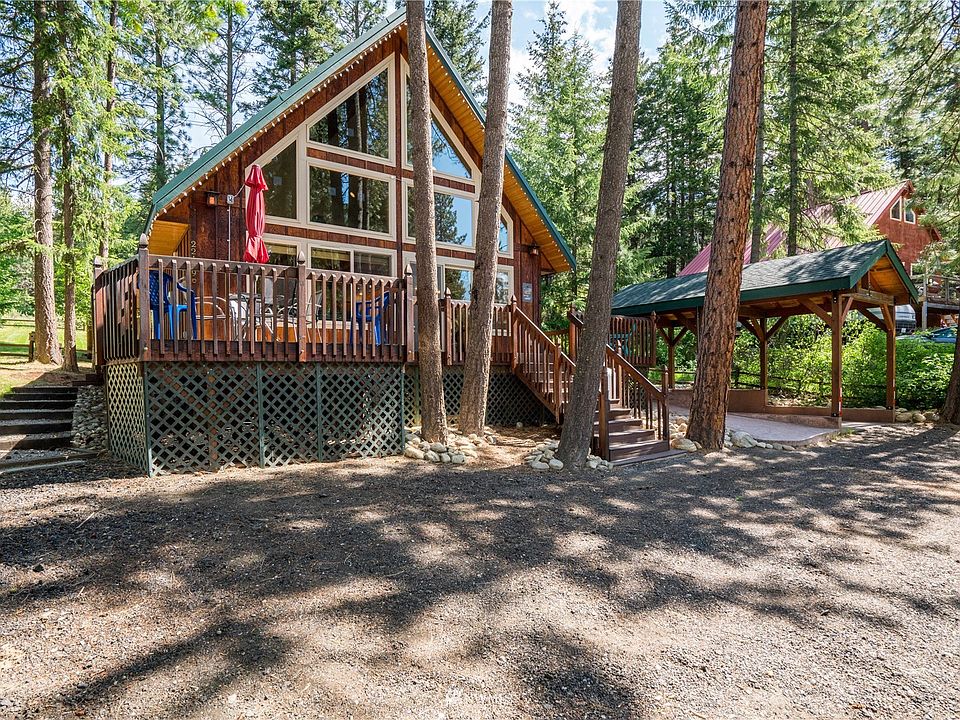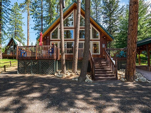 A charming chalet-style cabin within Leavenworth's popular recreational community the Ponderosa Estates. This 1/3 of an acre hosts ample parking up front w/ an additional carport for the winter months. Plenty of room in the backyard & space to relax w/ your newly installed covered hot tub area. Vaulted ceilings & exposed timber beams complimented by custom hand-scribed log posts give this cabin the true feeling of cabin living. The open concept layout in your kitchen, dining, & living space makes this your ideal space for entertaining. Community features include river access, a private pool, a clubhouse, a community playground, ball fields, & a trail system. Substantial upgrades made to this cabin in the last two years, ask for more info.