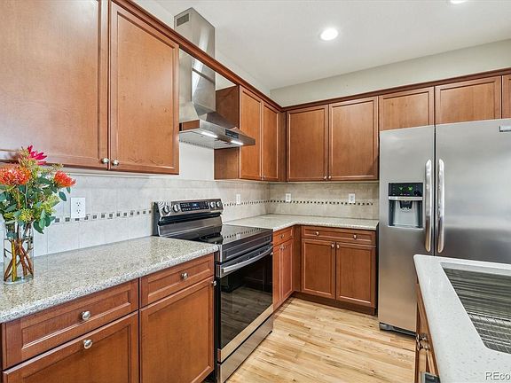 This remarkable, turn key home in coveted Copperleaf sits on an oversized corner lot on QUIET street with lush landscaping and attention to detail throughout the home that sets it apart. Since purchase, the owners have invested significantly in the home. The main floor was updated with consistent, gorgeous hardwood floors throughout, creating effortless flow from room to room. The kitchen has been upgraded with an expanded kitchen island with counter-height seating and new dishwasher, oven/stove and range hood. The home also has a new washer and dryer, as well as top of the line AC and furnace with air purification installed in 2022. The gas stone fireplace in the living room gives the space an inviting feel year-round and the updated back sliding doors (with high end enclosed blinds) lead you outdoors to a covered patio and additional, new stamped backyard patio for your Colorado outdoor entertaining. The home is practically laid out with kitchen, living room, formal dining room, two bedrooms, including the primary suite, two baths, and laundry room on the main level. The basement includes two additional bedrooms, full bath, and spacious family room for movies, games, or anything else you dream of. There is also new lighting in many rooms and granite countertops in all bathrooms and kitchen. Don't forget about the oversized garage with plenty of space for 2 cars PLUS bikes, skiis, tools, work bench, etc. There is so much about this home that sets it apart from the rest. Come see for yourself! This home sits within walking distance to parks, playgrounds, trails, community pool and clubhouse, and is zoned to Cherry Creek Schools.