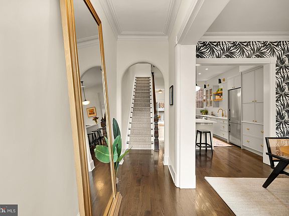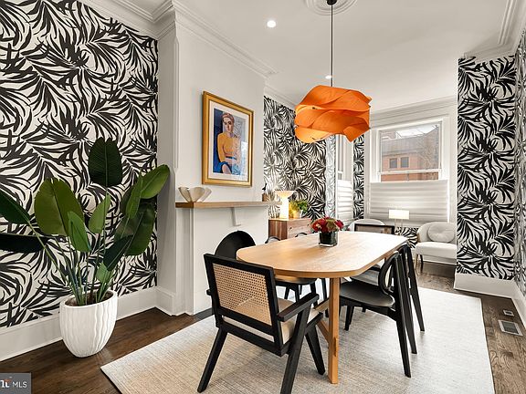 Introducing 2211 13th St NW, a very special home that blends period detail with modern comforts and luxury finishes. This solidly constructed residence has been meticulously updated and maintained. Rear deck and parking. No work needed. Measures approx. 1,936 sq ft w/ basement • KITCHEN Completely renovated in 2021. Custom-made Cabico cabinets with soft-close and large pantry with “appliance garage”. Unique custom glass wall cabinet with floating white oak shelves. Under cabinet lighting. A dramatic wall of Waterworks handmade ceramic tile 3” x 12” cut. Stainless steel appliances – Jenn-Air 4 burner gas range, Liebherr refrigerator, Bosch dishwasher, Sharpe under-counter microwave and convection oven. Plenty of counter space with a large kitchen island finished in Caesarstone. • DINING Gorgeous wallpaper line the dining room and a sculptural curved pendant centers the space. Decorative fireplace with original marble front. Soaring 10 ft ceilings with original crown molding, 8” baseboards, and window casements with corner rosettes. • LIVING ROOM Lime washed, exposed brick wall, custom bookshelf and handmade floor-to-ceiling drapes. Hunter Douglas Roman Shades with UltraGlide Control System • DECK & PARKING Parking with roll up garage door. Deck planked with durable Trex and custom flower boxes along railings. • PRIMARY BEDROOM Original heart pine antique wood floors, Hunter Douglas blackout shades, and a built-in closet system. The stackable w/d is conveniently located adjacent to the primary bedroom. • FULL BATH Spa-like bath with luxurious Duravit Starck soaking tub, trough bathroom sink with matching wall mount faucets. Diamond patterned ceramic floor with glass tile inserts. Frameless glass shower and marble surround. Large skylight with motorized shade. • SECOND BEDROOM Eastern facing second bedroom which also has the original above-door transom and a ceiling fan. • DEN / HOME OFFICE This room has a window, closet and dropped soffit if the new owner wishes to close off and reconfigure it as a third bedroom. Recessed picture lights. • BASEMENT Immaculate basement for storage with built-in shelving. • SYSTEMS / GENERAL Top-of-the-line new furnace and a/c condensing unit (yr 2023). Gas water heater (yr 2019). Tuckpointing of the brick façade –front and rear – was done using traditional methods and materials to restore the original appearance and maintain the structural integrity. • LOCATION An exceptional location walkable to DC’s best dining, fitness and entertainment options. Two blocks to the U St Metro and cyclist’s paradise. Steps to the Whole Foods on Florida Avenue, Streets Market and Trader Joe’s on 14th Street. Check out the 3D Matterport tour.
