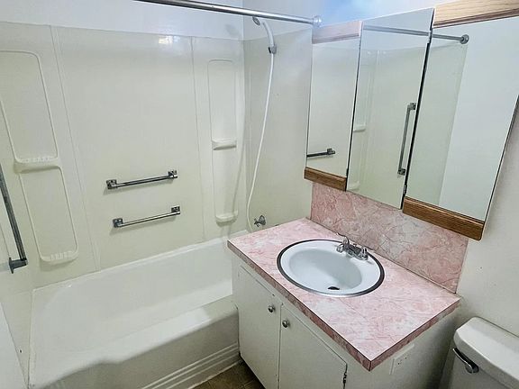 2 Bedroom, 2 bathroom bungalow in alley. Carpet in one bedroom, and wood floors in the other. Bathroom in each bedroom. Stackable washer/dryer. Private entrance. Heated 1-car garage. No pets No section 8 Utilities included. Prefer 1 year lease term Utilities included