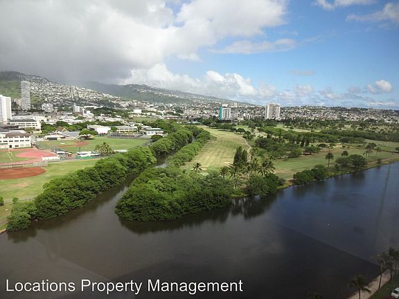 Aloha Lani, Awesome Views, High Floor - Floor to ceiling glass window overlooking the majestic mountains and the Ala Wai Canal. Newly painted, laminate flooring throughout. New range/oven, refrigerator, garbage disposal. Locked entry, security guards. Pool, sauna, exercise gym room, BBQ area, car wash area. Common laundry at the building. Unit comes with 1-assigned covered parking stall. Also comes with a small storage locker on the same floor. Included water/sewer. Available immediately. 6-months minimum. Call for a showing, 662-736-8808 Mark Silva or Bradley Jakobsen (RA) (RLNE1866417)