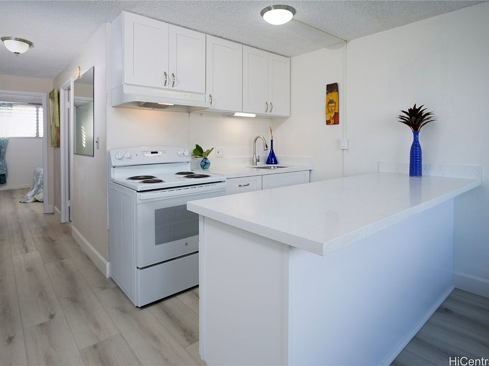 Fully remodeled, turn key unit. Gourmet kitchen with matching bathroom. Quartz counters and solid wood, white cabinets. Assigned, gated covered parking. Fresh paint and new luxury vinyl plank flooring. Higher floor with view of the canal, mountains, tail of Diamond Head, golf course and peek-a-boo ocean/Royal Hawaiian hotel view from bedroom. Resort-like amenities include; sauna, pool, hot tub, rec room, rec deck, gazebos, bbqs and weight room. Close to Waikiki Beach, dining, entertainment, walking path along the canal, shopping and entertainment. New water shut offs and all new electrical breakers.
