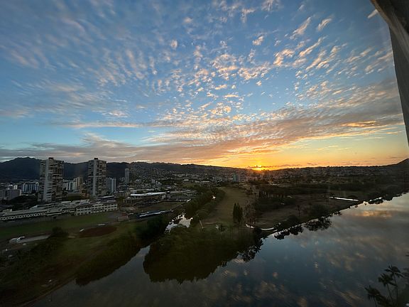 Excellent morning sunset view, views of Ala Wai canal, golf course, city and Mountain View.