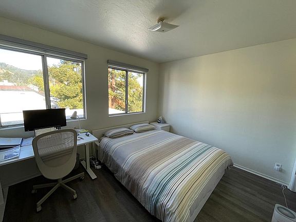 ONE FREE PARKING SPOT Brand new bathrooms! Penthouse with 2 Bedrooms and 2 Bathrooms, 1000 SF, 4th floor with a large rooftop balcony. VIEW OF THE GG BRIDGE! Prime Location: Open living concept, naturally well-lit with floor to ceiling windows located in a well maintained tree-lined neighborhood, close to the UCB Campus, eclectic shops and dining on Telegraph. Walking distance to Berkeley Bowl, Whole Foods, Downtown Berkeley and Ashby Bart Stations. Additional Features Include: - Secure entry - On-Site laundry - Storage Unit - Bicycle Store Room - Friendly & responsive on-site resident manager. - Owner pays water and garbage. Lease Terms: 1-year lease $3795 month, $3795 security deposit. First month's rent and security deposit required at signing Application fees are $35 per applicant and $35 per co-signer if applicable. Buildium Property Management Software provides all residents, convenient online portals through which they can connect with us, make payments, and submit maintenance requests. Get in touch with us to complete our application and leasing process electronically at our website, https berkapts.managebuilding.com. 24-unit complex offering a mix of 1-and-2-bedroom apartments in an easily accessible, walkable and commuter friendly neighborhood. 1 year lease $3795 month, $3795 security deposit. First month's rent and security deposit required at signing Application fees are $35 per applicant and $35 per co-signer if applicable.