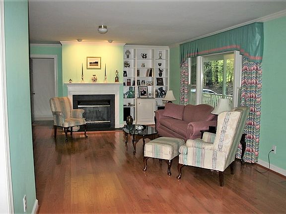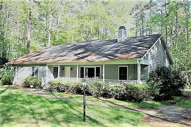 Lovely Ranch nestled in a wooded setting on over 2 acres yet so close to everything! 4BR, 3BA, new HW flooring; Lg Living Room opens to formal DR w/2 sets of glass French doors to Deck & Scr Porch! Generously sized rooms w/attention to comfort of living: Deep window seats, skylights, open plan. Huge FR w/masonry FP & window seat; opens to Kitc w/Snack Bar, skylights & Breakfast. Spacious Master w/window seat, Bath w/2 sinks & 2-person jacuzzi tub w/shower! BR2 w/priv. BA. Fenced Yard w/Shed. Must See!