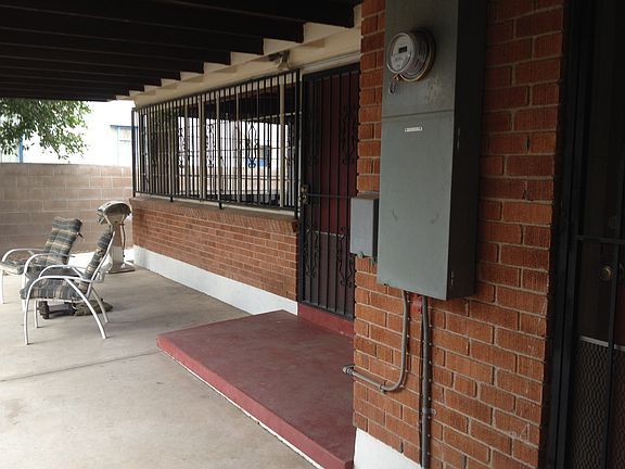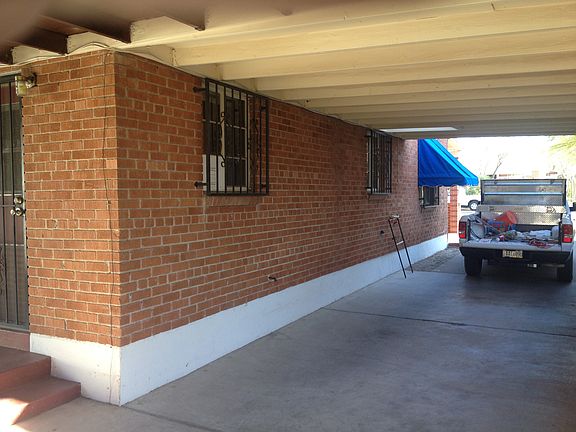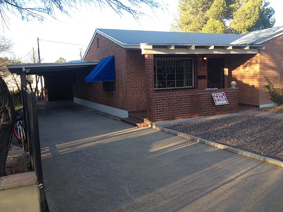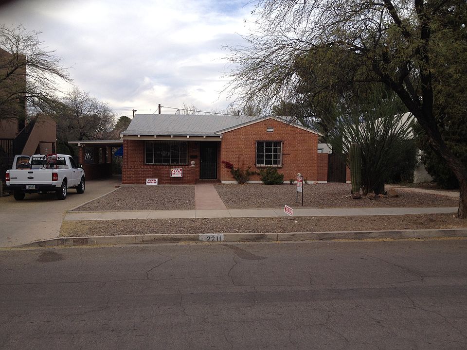 Sam Hughes, 2 Br/2 bath (tile floors thru out) with an Arizona room. Remodeled baths with tiled walls. Large front & rear covered patios. Private walled & fenced rear yard facing north--always shaded. Large 2 car carport & driveway suitable for another 2 cars. Lots of storage including storage room at the end of current carport. Note coved ceilings in the living room & front bedroom. Subtle, swirling, Plaster pattern on living room ceiling. Very well cared for home. New water line form street. Great location--4 blocks to the U of A & popular Rincon Market. Potential historic real estate tax reduction.