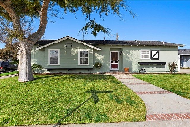 Welcome to this delightful single story home, where charm and character abounds! Situated on a generous corner lot, a mature shade tree and meandering brick pathway creates a welcoming first impression. Once you enter into this home that has been freshly updated throughout, you will appreciate the updated warm feeling that makes it home. Soothing neutral wall tones throughout, the spacious living room enjoys double French doors that lead out to a large screened in covered patio that reminds you of Southern living. The newly remodeled kitchen boasts gleaming granite countertops and bright white shaker cabinetry, with convenient laundry and a casual dining niche just steps away. Hallway leads to four bedrooms and two bathrooms. Desirable upgrades include raised panel doors, energy efficient vinyl windows, cooling ceiling fans, and rich plantation shutters. The covered patio is ideal for relaxation and where you will want to spend most of your time looking out at the sprawling grassy lawn. Backyard is privately fenced, with direct access to the two car garage and even a matching storage shed awaits. Great location with quick access to the 55 freeway and plenty of restaurants. This home is affordably priced and move-in ready! Call today for your private showing!