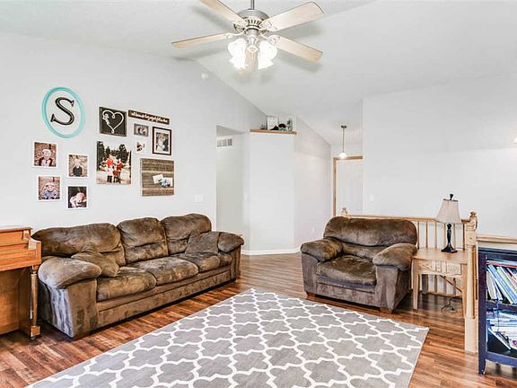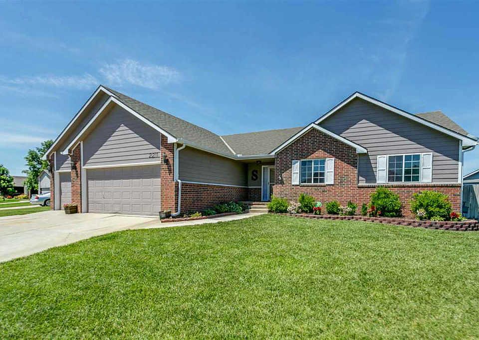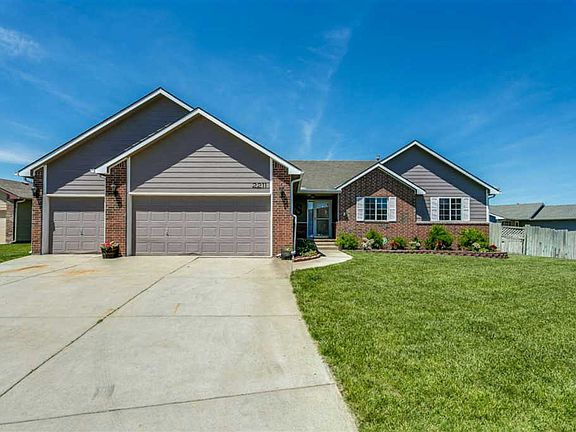 Welcome home to your gorgeous Goddard home! This 5-bedroom, 3 bath home has everything you want on a beautifully landscaped, oversized corner lot! When you walk into the home you will notice the dark wood laminate flooring throughout the main living space, vaulted ceilings, and all of the natural light pouring in. The living room also features a woodburning fireplace to keep you warm during the winter. The kitchen includes an island with eating bar, pantry, tons of cabinet and counter space, and the stainless-steel dishwasher and range stay with the home! The other side of the home includes the master suite with vaulted ceilings. This massive room leads into the updated master bathroom with new flooring, double sinks, a tub and shower combo, and a walk-in closet. The other two bedrooms and another full bathroom with new flooring are down the hall. All of the bedrooms have brand new carpet! The view out basement also has new carpet and lets in plenty of natural light. There are two large bedrooms, a huge storage room, and another full bathroom with a luxurious whirlpool tub to round out the basement. Do not forget to check out the fully fenced backyard! This captivating backyard features a covered deck, sprinklers, a newer shed, a sandbox, and a playground set! This home has many upgraded features too: 96% efficient furnace and AC, whole home air purifier, 50-gallon water heater, a radon mitigation system, and a water softener system! Do not miss out on your chance to own this impeccable home!