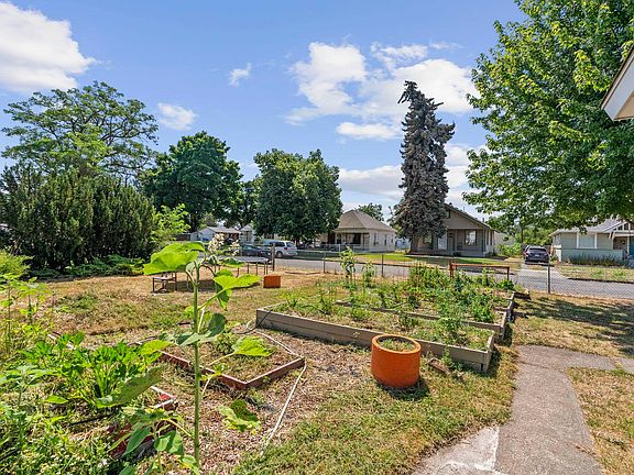 Nice, spacious 4-bedroom, 2-bath home on a large double lot, 100x140. The house is a little over 2500SF—room for an office or a 5th bedroom; there is a laundry room and another storage room. Beautiful wood floors. Large living room/family room. Another big family room in the basement. Egress windows in the basement bedrooms and family room. There is an oversized two-car garage and a 30x50, four-bay (10" doors) shop, insulated and with plenty of power, with a small office set up and on its separate electric meter. The shop and home are on opposite sides, and if the lot were split, the shop would be on its own lot. The garden areas are set up with a drip watering system. It is close to schools, the university, shopping, and downtown. This home has so much potential and so much to offer.