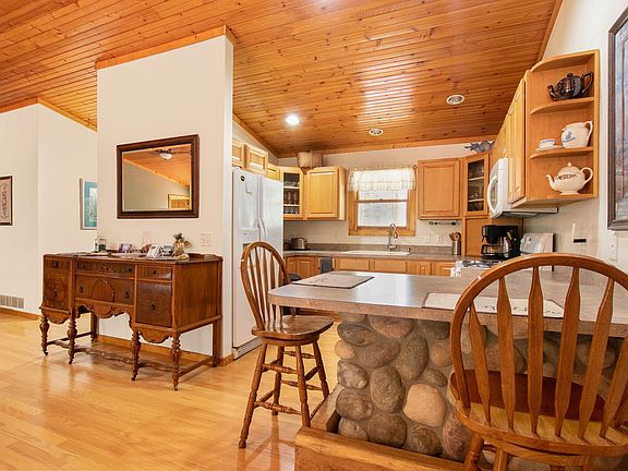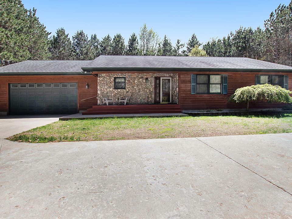 Lovely ranch style home nestled in the woods with Sauble River access at the private association park and federal land right out your front door. 4 bedroom, 3 full bath home greets you with an inviting covered front porch. Main floor has soaring cathedral ceilings, field stone fireplace, open floor plan with kitchen, living room, dining room and sliders to the expansive back deck. Field stone accents on breakfast bar and on front of home. 2 large bedrooms, full bath & master suite with full bath complete the main floor. Full finished basement with laundry, storage, family room and bedroom with egress window. 2 car attached garage with bonus work shop space. Concrete paved driveway. Located conveniently between Ludington & Manistee. Relax and enjoy the peace and quiet in the woods.