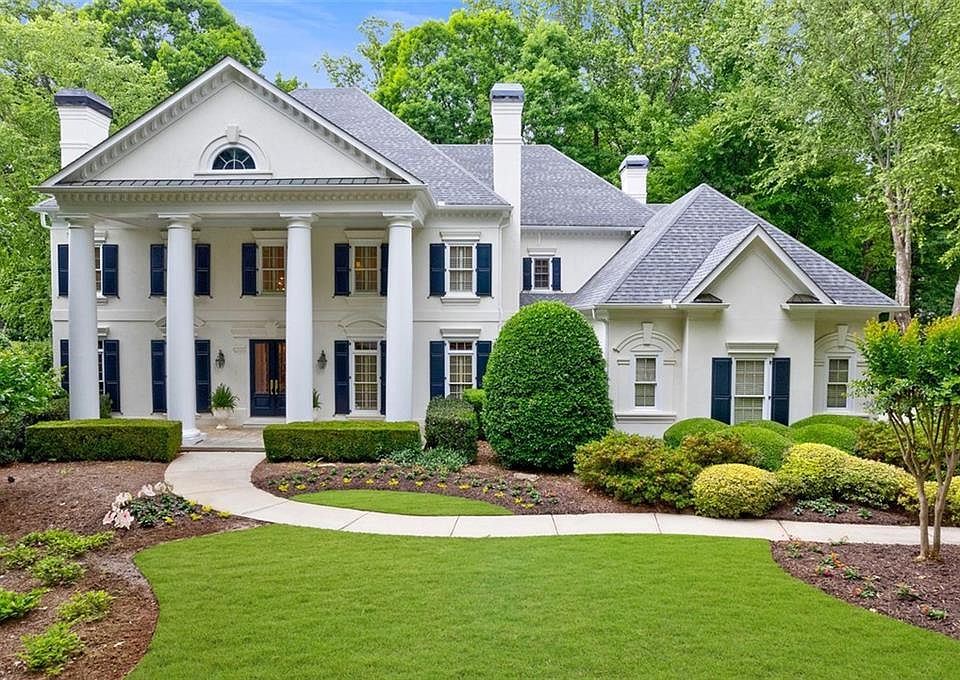 This light, bright and open luxury home in Sugarloaf Country Club was custom-built by the original owner! Offering both impressive curb appeal and an open, comfortable floor plan, this classic architectural masterpiece integrates timeless and modern elements accommodating contemporary lifestyles. The well-loved home is spotless and has been meticulously maintained including roof and all mechanical systems. A grand entrance with classic exterior columns and large stone front porch sets the stage for an elegant interior blending classic southern grandeur and modern luxury. Walk through double doors with beveled glass to an open foyer with soaring 20-foot+ ceiling adorned by individually pieced crown moldings. The entryway opens to an elegant living room, solid wood paneled study, and graceful dining room all with fireplaces and extraordinary details. A large butler’s pantry connecting the kitchen and dining room is perfect for serving guests. Prepare meals in the upscale kitchen with expansive center island, high-end appliances (Sub-Zero, Viking, Thermador) and updated quartzite countertops. The kitchen, keeping room, and breakfast room comprise one large space accommodating everyday living and gathering. Escape to the private upper-level primary suite with sitting area, fireplace, super-sized closet, spa bathroom and private covered porch. The laundry room is conveniently located upstairs along with 3 additional generous sized bedroom suites all with 10-foot ceilings. Enjoy entertaining and recreation on the handsome terrace level which offers a full kitchen and pub bar, 400 bottle wine cellar, fitness room, rec room, and large bedroom suite. Outdoor living includes 3 covered resort style porches overlooking a natural and private backyard to enjoy the nature scenes. With 6 large bedrooms/baths, 5 fireplaces, 2 kitchens, 3 finished levels each with private covered porch, this home provides an incredible luxurious lifestyle and is a great fit for multi-generational families. Many extras including cedar closet, several large storage areas, roof professionally sealed to prevent entry by animals, updated HVACs systems, updated water heaters, updated gutters, roof replaced and more. The convenient location offers easy access to the Sugarloaf main gate and country club amenities. The secondary street location allows for ample guest parking without the congestion of the main streets.