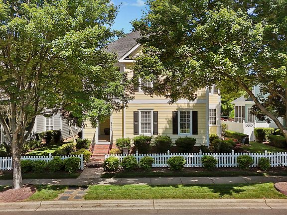 Make this beautiful Charleston style home your own. Great location in N. Raleigh w/a rocking chair front porch, white picket fence,on tree-lined street. Spacious 1st fl primary suite features a fully updated primary bath, granite dual vanity sink & luxurious oversized shower. Relax in the sun room.Hardi plank floors on the main level.The gas log fireplace warms the family rm. Beautifully updated kitchen has white quartz countertops,herringbone backsplash, stainless appliances, breakfast nook & gas range. Main fl laundry room w/working laundry chute on 2nd floor. 2nd fl features 2 large secondary bedrooms and large 4th bedroom/bonus rm w/closet w/ access to balcony & walk in attic w/storage on 2nd fl. Enjoy 2 large patios for outdoor enjoyment.Fantastic community amenities include clubhouse, pool, tennis, playgrounds, pickleball & greenway trails!