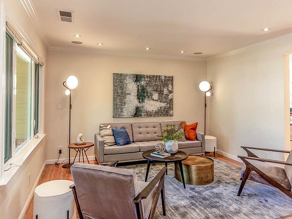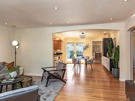 A thoughtfully upgraded home with a flexible, family-friendly floor plan. Comes with approximately 533 square feet (buyer to verify) of additional finished space in the garage usable as a playroom or study, and a detached unit which offers room for a gym and executive office. The main living areas consist of a front-facing living room, dining area with modern wall-mounted built-ins, an oversized gourmet kitchen, and a private master suite with access to the grounds. Outside, every inch of the deep yard watered year-round by an on-site well, is utilized to include a level lawn, an entertaining patio with firepit, play structure, and a vast elevated deck with cafe lighting. The epitome of California indoor/outdoor living! Located in the sought-after Oak Park neighborhood of San Carlos, with good schools, parks/trails, vibrant downtown, and commute routes nearby.