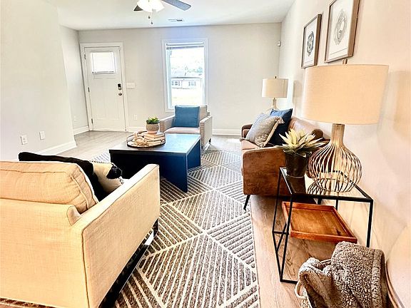 Constructed in 2021, this charming home sits on more than half an acre and features an open floor plan with 3 bedrooms and 2 full bathrooms. The modern kitchen boasts granite countertops and stainless steel appliances, while the bathrooms are beautifully tiled. Vinyl plank flooring runs throughout the home, providing both durability and style. As you arrive, you’ll notice the large concrete driveway and the inviting covered front porch, perfect for relaxing in a rocking chair. All appliances remain, including the refrigerator, washer, and dryer.