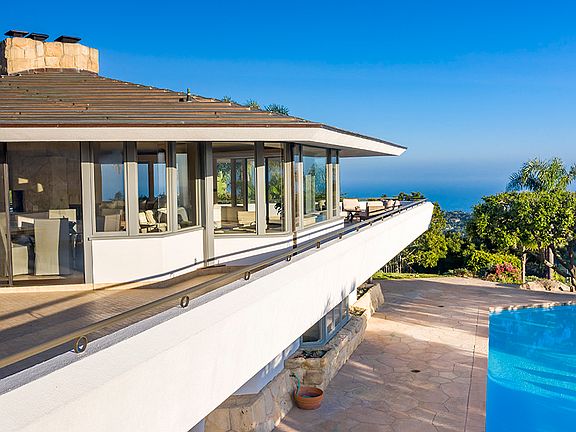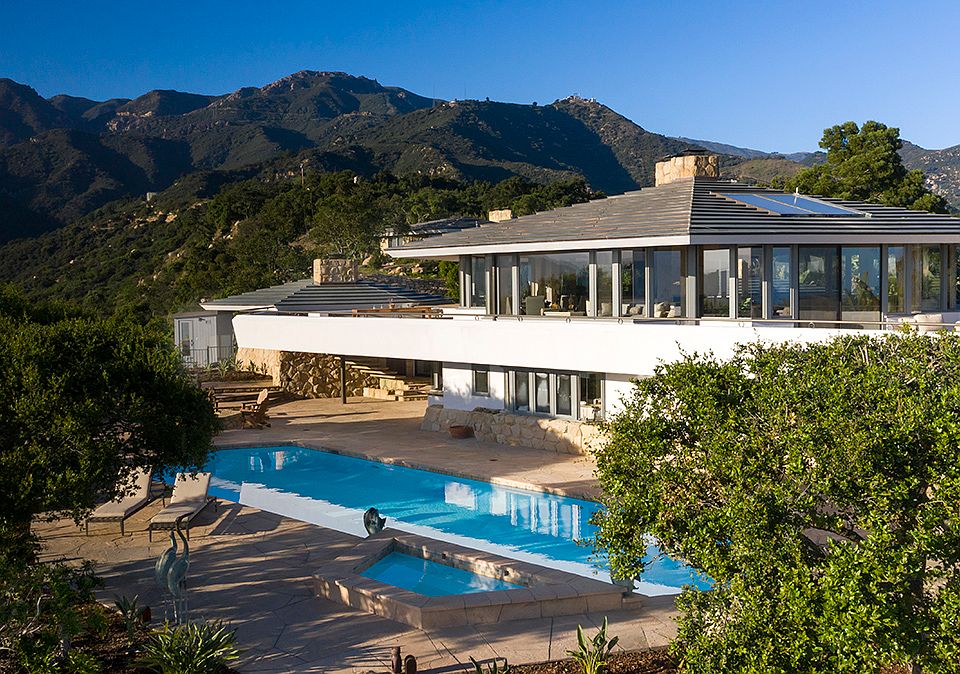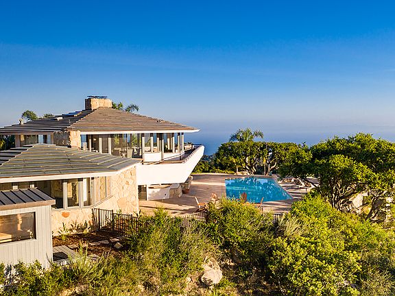 Art in Architecture. Resting above the American Riviera with majestic 360-degree coastal mountain and ocean views, this gated, 4,840 square foot home is nestled organically within the Santa Barbara foothills. An architectural tour de force, the 5.7-acre property was designed by Cliff Hickman, a disciple of Frank Lloyd Wright. Evoking the famed architect's signature lines, this mid-80s masterpiece is poised for entertaining and once served as the retreat of British pop star, George Michael. Displaying a hexagonal footprint, the home's honeycomb-like framework was designed around a central chimney to comprise a glass-walled Great Room. A wrap-around terrace offers breathtaking views of the Pacific and coastal mountains, overlooking the pool, sauna, tennis court, and guest house.