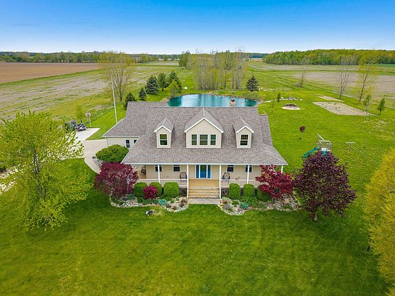 Nestled on a little over 10 acres, this stunning 2-story home offers the perfect balance of luxury, privacy, and outdoor adventure. Ideal for large families, this property is designed to cater to every need. With 6 spacious bedrooms, a grand floor-to-ceiling fireplace, a finished walkout basement, a private pond with breathtaking sunsets, a large pole barn, and so much more!! This home provides an incredible combination of comfort and nature. The surrounding land is teeming with wildlife, offering opportunities for hunting, birdwatching, or simply enjoying the beauty of nature. Whether you're strolling along the pond, observing the wildlife, or enjoying your morning coffee on the deck, the outdoor setting provides a sense of serenity and connection to the natural world.