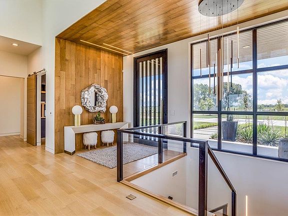 "We are not in Kansas anymore," is the thought that will come to mind when you experience this custom designed California-Modern estate home by Craig Sharp Homes, Inc. Enjoy the lake life daily literally steps from your back door on the 100+ acre Emerald Bay Estates ski-lake in this 6,100 square foot home. Upon arriving at the property you will be welcomed by the long driveway with center brick medallion and ample parking. The custom 10' Iron Door will greet you and guests into the great room with 18'6" tall ceilings, clerestory windows, beautiful trim and stone detailing, custom lighting accents and full fireplace wall porcelain surface. The main level boasting 3750 square feet features three bedrooms, all with on-suite bathrooms and walk-in closets, a dedicated office with built-ins, open concept kitchen with separate walk-in butler's pantry, an all-season separately zoned Lanai/Sun Room with two-way stacking doors, laundry, 1/2 pool bathroom, pool storage and 5-car oversized heated and insulated garage. The master suite features stacking doors which open onto the covered patio, cast soaking tub, full granite slab feature wall in the glass shower, floating terrazzo opposite sinks with linen storage, custom closet with dresser island, waterfall quartz and clothes steamer. The basement features large open family room with wet bar and separate entertainment bar, beverage and wine refrigerators, large exercise room with rubber flooring (could serve as 6th bedroom or theater, craft room, etc.), two additional large bedrooms with walk-in closets and two additional bathrooms, and two unfinished storage areas. And last, but definitely not least - the exterior oasis is sure to impress with custom heated Gunite pool with Baja sun deck, bubblers and LED lighting, firebowl accents, travertine pool deck and coping, covered patio off lanai and 20'x30' Cabana with room for outdoor sectional, eating space, eating bar, built-in serving bar with grill, beverage drawer, ice sink, trash container and storage drawer. The Cabana rooftop is the perfect place to enjoy a beautiful sunset, sun-tan or the amazing neighborhood Fireworks. The outdoor turf provides a maintenance-free upper yard and year-round color, while the lower yard and total of 1.28 acres provides additional room for children/pets to play. The sandy beach has a cove cutout perfect for a boat dock to be situated within and easy access to the water. The custom details and upgraded features are limitless, including built-in Sub-Zero, Wolf and Thor appliances, Rift-Sawn White Oak hardwood flooring and woodwork, TrueStyle custom solid wood interior doors, DalTile Porcelain solid surfaces, Emtek marble knobs, museum-style baseboards, LeGrand Adorn Lighting System, custom lighting accents, epoxy garage floor, custom-painted garage walls, electronic blinds in lanai, Control4 Surround Sound/Security System and Cameras, Zoned 3-system high-efficiency HVAC, Icynene foam insulation in the attic, custom-color concrete stucco exterior, planters and plant dripper lines. Skiing is not all this wonderful community has to offer - surf, wake-board, e-foil, paddle-board, kayak, fish, take an evening stroll on your boat or float around with friends enjoying your favorite summer beverage! The community features a newly remodeled clubhouse, community pool, community dock and boat ramp, pickleball courts, basketball court, as well as hosts several annual events including a SPECTACULAR annual fireworks show, Christmas boat parade, fishing tournaments, cardboard boat racing, and Easter Egg hunt among others - it simply does not get better than this! Listing agent is seller.