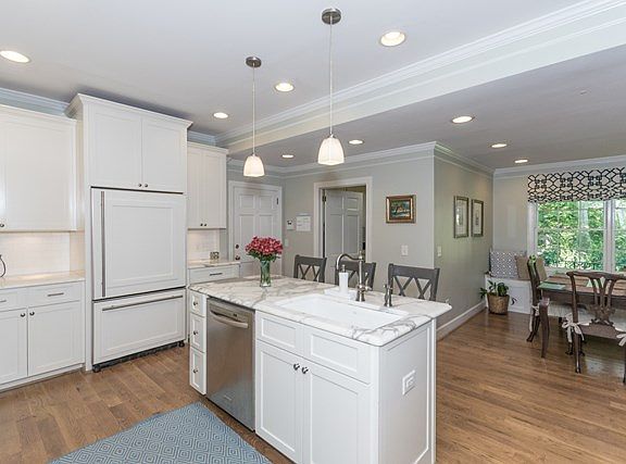 Great family home with 5 BR & 3.5 BA in Midtown. Updated kitchen w/stainless appliances, sub-zero, marble countertops, banquette, & wet bar. Kitchen & family room over look large covered porch & inviting backyard. Master suite located on the main floor w/2 add'l BRs, living and dining rooms. Recently completed upstairs has 2 bedrooms, one bath, & a playroom. Foam insulation was added during the remodel. 2-car garage, circle driveway. This home is move-in ready, a rare find in Midtown!