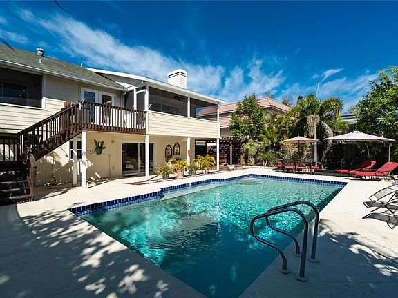 PRICE REDUCTION! Many Extras in this large home 4 Bedrooms- 3 Baths- Read notes below! Never miss a sunset in this beautifully remodeled home! Located in Popular Palma Sola Bay Estates. Spacious 2 story property, high ceilings, new paint, newly textured ceilings & upgrades galore. Love to entertain? This home is for you! Formal Living room & Dining area with beautiful wood floors that opens to new front balcony where you can enjoy the sunsets, Palma Sola Bay,and summer breezes. Chefs will love the well-planned Kitchen and Family room combo. New stainless steel appliances including,double oven, induction top w/grill area, new wood kitchen cabinets & island with granite counters. New electrical Fans, lighting w/ dimmers & under cabinet lighting. Family room is complimented with a new wood burning fireplace with granite hearth, high ceilings & wood floors. Large sliders opens to screened porch overlooking the pool. Split bedroom plan with large master bedroom & two guest rooms. All three bedrooms with new wood flooring, lights, ceiling fans & freshly painted with textured ceilings. Large Lot 95 X 170 with extra large drive space & workshop. Amazing huge swimming pool with covered deck, hot tub cabana, & outdoor shower. Extra bonus area on bottom floor DOES NOT SHOW IN TAX ROLL- with living room area 32x16, Dining area, 18x17, Bedroom 13x11, bathroom with shower, custom bar with sink, wine refrigerator, stainless steel refrigerator, washer & dryer. No HOA. 6 minutes to the public beach. Room for boat parking.