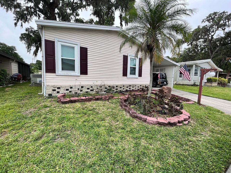 2211 Paradise Way, Palmetto FL. 34221 Country Lakes Village II 55+ Community, Pet friendly, this home is on a rented/leased lot. Come check out this updated 2BR/2BA mobile home on the pond! It has a back set lanai and connecting outdoor patio area that provides for plenty of outdoor living space. The backyard area is oak-tree shaded and has a fabulous view of the pond. It is being sold partially furnished. The home comes with vaulted ceilings and newer dual-adjustable mini-blinds throughput. There are many upgrades that make this home special: New vinyl thermo-pane windows! Upgraded kitchen countertops! New entrance steps! New entrance door! Upgraded sinks and vanities- both bathrooms! Wainscot half-walls in dining area! 2016 AC comes with transferrable warranty! Motion sensor flood lights! Custom color fresh paint! There is a 10' x 12' screened, back set lanai with a direct view of the pond. There is also a similar sized paved outdoor patio area that also looks out to the pond. Both spots provide great views of the shaded area around the pond. There are upgraded laminate floors throughout the living, dining and bedroom areas. The kitchen has vinyl flooring and comes with matching black refrigerator, dishwasher, and oven/stove. There are upgraded countertops and custom cabinets. There is a large island that can be used for food preparation or as an eat-in kitchen table. The separate dining area comes with lower-half wall wainscoting and a ceiling fan. There is built-in bench seat and table. The living room has a ceiling fan and a sliding glass door to the back set lanai. There are fabric vertical blinds on sliding door. The large master bedroom has a walk-in closet, vaulted ceilings, a ceiling fan and a master bath en suite. The master bath has custom paint, upgraded single sink/vanity cabinet and a separate walk-in shower. The guest bedroom has vaulted ceilings and a double door sliding closet. The hall bathroom has custom paint, an upgraded single sink vanity and a separate tub/shower combination. The carport can park two cars tandem style. There is a large shed with 2 entrance doors. The shed opens to the carport and back patio area. There are laundry hookups for a washer/dryer (both are included in this sale!) The lot rent is ~$720 and includes lawn, clubhouse and pool. It comes with all the amenities that Country Lakes Village II has to offer. The final Lot Rent to be determined by Country Lakes Village II. Country Lakes Village II is conveniently located on 41N just south of I-75 and the Skyway Bridge for easy access to Tampa, the surrounding area and the Gulf beaches. Florida MH Sales, LLC cannot guarantee or warrant the accuracy of this information, measurements, or condition of any property. Measurements are approximate. All homes are sold "as is" and personal or professional inspection is encouraged. Lot rent is set by the community and is subject to change. All buyers must be approved by the community prior to closing on a negotiated sales contract