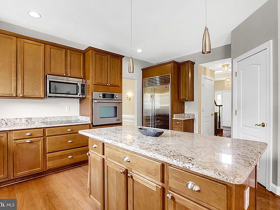 Stunning brick-front colonial on picture-perfect lot! The best of both worlds: privacy from the woods surrounding multiple sides of the property, but in a neighborhood setting. Minutes from the NCR trail. Built in 2004, it offers every modern amenity you'd expect plus an inviting neutral decor and style. Beautiful, light-filled, two-story foyer takes you to the upscale foodie kitchen. Sub-Zero commercial refrigerator, JennAir touch-screen induction cooktop, and large granite island perfect for cooking and entertaining. Open floorplan has wonderful flow to the breakfast room and family room with two sliders to the rear composite deck. A wall of windows allows for great natural light in the summer, and the gas fireplace creates warmth and coziness in the winter. Picturesque dining room with custom panel molding opens to the formal living room or just another space to relax. The main level also holds an office, powder room, and laundry room with access to the attached, oversized two-car garage. Upstairs you'll find a stately master suite that has it all: cathedral ceiling, spacious walk-in closet, and French doors to large ensuite bath with double vanity, glass shower, separate water closet, and Jacuzzi tub. Also on the upper level are three additional bedrooms, a full hall bathroom, and a fourth bedroom with its own ensuite full bath. The walk-out lower level has ten-foot ceilings and a rough-in for a bathroom, ready for you to finish the way you'd like. You won't mind being home more these days with this idyllic, level backyard complete with split rail and wire fence. Take a walk down to to First Mine Branch and come home to this impeccably maintained home! Ten minutes to I-83 and award-winning Hereford Zone schools!