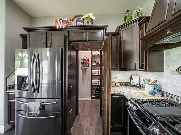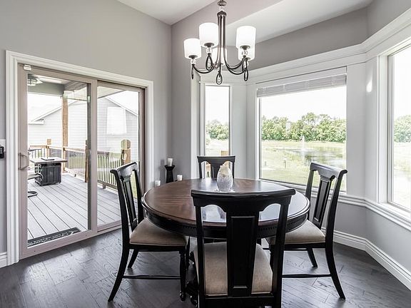 You will not want to miss this GORGEOUS, practically new, custom-built CherryWood Construction home located in the Casa Bella addition. This 5 bed, 3 bath, 3 car garage home offers a popular split floor plan and sits on an oversized lot with views of the pond. Nearly every detail throughout the home has been thoughtfully designed by the owners providing a true WOW factor. Here are the highlights! A stunner from the street with large stone and brick detail and a dramatic stone arch on the covered front porch. As you enter the home a marble floor entry with a beautiful custom tile insert welcomes you. Take a few more steps into the living area and you are greeted by all the beautiful details' archways, crown molding around the windows, stone gas fireplace, luxury wide-plank engineered hardwood flooring and views of the pond! The kitchen offers granite countertops, stone front island, custom cabinetry, gas stove, a must-see walk-in butler's pantry as well as a dining area with a bay window, again offering views of the pond! The high-end details and views continue in the master bedroom with a dramatic accent wall, vaulted ceilings and his and her closets. The master bath has a dual vanity with granite countertops, walk-in tiled shower and a pass-through to the laundry room, which you can also access from the drop zone as you enter from the garage. The main floor bathroom is spacious with tiled floors and granite. The front guest bedroom has crown molding around the window and the second bedroom also offers views of the pond! Your view-out basement also has views of the pond, high-end carpet, and tiled floor surrounding your impressive wet bar that also has granite and stone bar front. Two additional bedrooms, also with views of the pond, and a bathroom, also with granite countertops, and storage finish it out. Outside continue to enjoy the views from the covered deck that offers composite flooring and wrought iron details. The homeowners even extended the deck and added a full concrete slab underneath. A definite mention has to be made for the garage as it boasts 13' ceilings and is plumbed with hot and cold water and an air compressor that stays with the home. Seriously, no detail was left undone. It's in immaculate condition and ready to be yours!