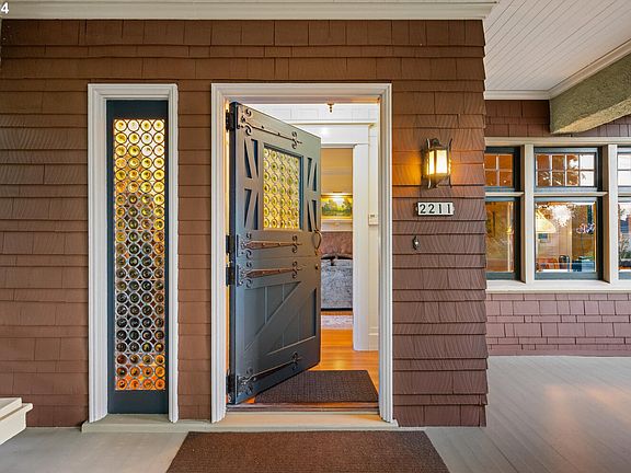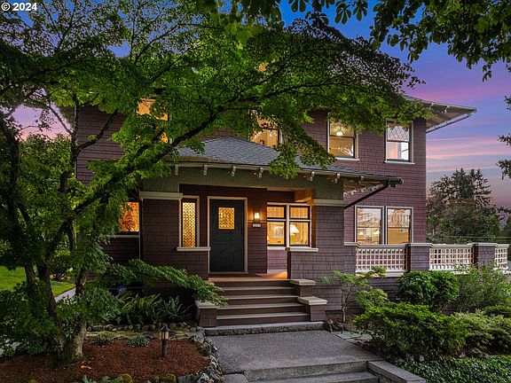 The Historic Louis Pfunder House was designed by horticulturist Louis Pfunder & architect Emil Schacht - inspired by Gustav Stickley's Craftsman movement. Stickley’s philosophy emphasized harmonizing homes with their natural environment, fostering a spiritual connection with nature while prioritizing natural light. This resonated with Pfunder. He chose a large corner lot with ideal exposure. He and Schacht balanced a cozy ambiance with refined elegance, incorporating architectural delights while ensuring the home's comfort, scale and environment were in harmony. Artisans from the Pittock Mansion were employed, including the Povey Brothers' for their stained art glass. Breathtaking stained and leaded glass windows, showcasing botanical themes, were designed for on all four sides of the home. The home's elevated position, providing privacy, maximizes natural light from every direction while casting patterns of colored light throughout the home, captivating, delighting & inspiring all who enter. This inspiration led to a passion for preservation. A journey that began with a historic postcard featuring the home and led to a 20-year restoration effort, that included surfaces, exterior, and systematic updates. Updated baths and kitchen effortlessly blend period-appropriate features such as custom Pratt & Larson tile, and furniture-grade Stickley-inspired cabinets. Today the home is inviting and comfortable, with a versatile, flexible layout for today's needs. The home has an unfinished basement, with access to the 2 car garage as well as a finished 3rd floor w/views of Portland and Mt Adams. Situated on a prime double lot, in the Grid of the Portland Heights neighborhood, surrounded by lush lawns, patios, and outdoor entertaining spaces. 1/2 mile to downtown, NW 23rd Ave, Providence Park & Washington Park. Council Crest's trails & Beaverton conveniences are nearby. There is convenient access to nearby Ainsworth Elementary, just 1.5 blocks away. [Home Energy Score = 1. HES Report at https://rpt.greenbuildingregistry.com/hes/OR10232562]
