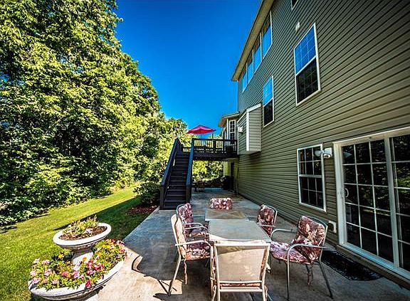 Price Reduced! Beautifully landscaped private lot with walk out and extended patio backing to woods. FRESHLY Painted throughout MAIN LEVEL! 9ft ceilings bay window and 42 inch cabinets surround large kitchen with walk in pantry. 2 story spacious great room features wall of windows and fireplace. Dining room, laundry room and Master bedroom suite finish off the first floor. 3 additional oversized bedrooms all with walk in closets on the second floor. Upgraded light fixtures throughout home. 4ft garage extension adds enough storage to accommodate homeowners needs. Humidifier attached to HVAC and an additional outside door added to walled off hvac area room in basement. The home is situated on a culdesac with a short walk to the neighborhood pool, playground, clubhouse and walking trail.