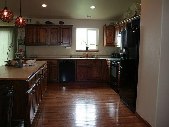 3/2/2 - Built in late 2011 by River Valley Builders, this house has a greatroom layout with vaulted ceilings on the main level. The staggered tri-level floorplan has 3 bedrooms and 2 bathrooms on the top level and a large, partially finished basement. With many South-facing windows the sunshine floods in all day. Beautiful hardwood floors run in the large kitchen and diningroom. Staind solid wood cabinets, trim and interior doors are throughout the house. All finishings are rubbed-oil bronze and wrought iron. High grade insulation, central air conditioning, forced-air gas furnace and gas fireplace keeps heating and cooling bills low. There are many upgrades and features including laundry chute and whole house humidifier. Front and backyard sprinkler system and landscaping includes flagstone patio, waterfall, pond, and 6 ft cedar privacy fence. The large driveway leads to an attached 2-car garage. Bar Nunn is a booming, family-oriented community with great real-estate investment potential. This house qualifies for the "Rural Housing Development Loan" which requires little to no down payment.