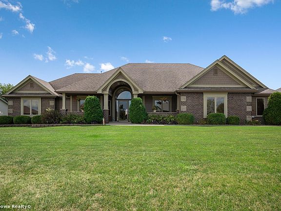 Your next home is located on Deer Run Golf Course. One owner Van Dam built ranch will inspire Large front porch ushers you across the ZERO ENTRY into an inviting hall with barrel vault to the open concept kitchen & living room areas vaulted ceiling. Formal dining room. Step out onto the deck & enjoy serene views of countryside Quality craftsmanship everywhere from custom kitchen cabinets to solid surface counters, doors & woodwork. Huge master suite tray ceiling, built-ins, master closet, double sinks, tile shower & separate tub, & toilet room. Finished walkout lower level features two bedrooms & bonus area plus generous storage opportunities. Patio. 3 car attached mechanic's garage with epoxy floor & workshop. Exterior painted 2019. IMU Fiber. New roof August 2020.
