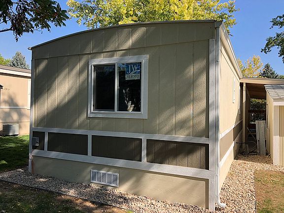 Darling remodeled 3 bedroom 2 bath home in one of the nicest senior living communities in Fort Collins!New Carport*New flooring*New appliances*New paint*New double pane vinyl windows*New fixtures*Front door coat closet*Pantry*Soft close cabinets in kitchen*Shed/workshop with electricity!Park has many amenities including dog park, community garden, pool, play equipment for grand children, club house, walking distance to City Park Golf Course & Park.You must see this home! Buyer to verify lot rent and square footage.