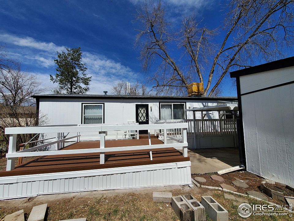 Beautiful home with lots of extras in a upscale 55+ community! Park does your lawn mowing, allows bigger dogs & has a dog park, pool, club house, community garden & more! 2 bedroom 2 bath home with 2 car carport and large beautiful deck to enjoy our Colorado sunshine! Big shed & workshop. Gas water heater & furnace. Vinyl double pane windows, evaporative cooling, ceiling fans. Large primary bedroom with walk-in closet & ensuite with walk-in shower. New carpet in bedrooms & living room. New linoleum in bathrooms. Don't miss this home! Buyers &/or buyers agent to verify lot rent & measurements. Lot rent only $984.00. Need a loan? 21st Mortgage, ANB Bank, Triad Financial can help.