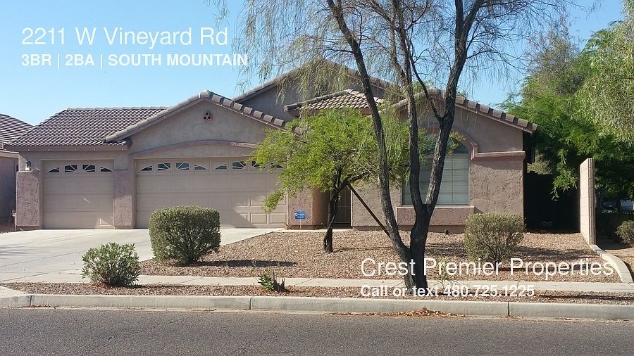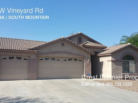 SCHEDULE A SHOWING ONLINE AT: showmojo.com/lh/902c401042 Single level 3 bedroom 2 bathroom home with a 3 car garage is nicely located next to a greenbelt area and offers a ot of space with a split floor plan. Split master bedroom with walk in closet and double sinks in master bath. The kitchen has black granite countertops. This home has tile floor on all traffic area including hall ways, great room, baths, kitchen and laundry room. Carpet in the bedrooms. Kitchen granite tile counter top and stainless appliance. Move in costs include: $1395 (first month rent), $1395 (security deposit), $250 (administrative fee), plus applicable taxes.com/l/902c401042/2211-w-vineyard-rd-phoenix-az-85041 Green Belt Near Major Park