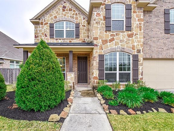 This home is situated on a waterfront lot with beautiful views. This home features 4 bedrooms, study, gameroom, and media room. Hardwood floors are in the entryway, living area, and study. The kitchen features a large island with granite countertops, pendant lighting, recessed lighting, tile floors, stainless steel appliances and beautiful dark cabinetry with under cabinet lighting. Sawmill Ranch community has amazing pools, splashpads, lakes, walking trails and recreation center. The community is close to the Grand Parkway which puts you very close to The Woodlands and I-45. You don't want to miss this house, so schedule your showing today!