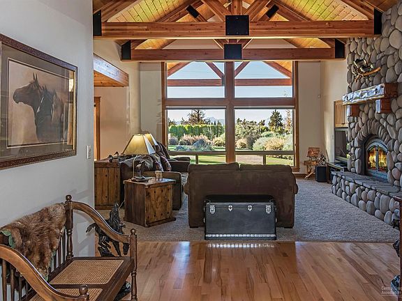 Amazing property, builders own home. Stone and pine log entry, custom kitchen, river rock fireplace. Great Cascade Mtn. views out of almost every room. Mature trees, professional landscaping, secluded country feel close to Bend. This is a must see property. 3 stall barn with pasture, insulated & heated detached shop with 22x35 motor home bay, 22x44 3rd bay for your boat/RV/toys and a 900 sq. ft. guest quarters upstairs. Attached 4 car garage as well as detached 4 car garage. Property has a greenhouse, garden area, 2 ponds, a beautiful water feature, paver patio and multiple caves on the property! This is Central Oregon at its best.