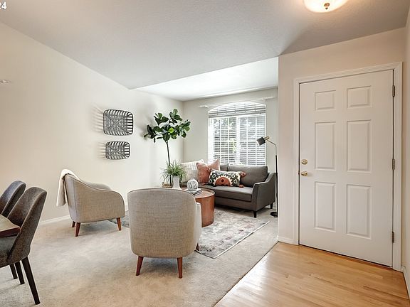 - Features: Living Room Dining Room Combo, Vaulted Ceiling, Wallto Wall Carpet