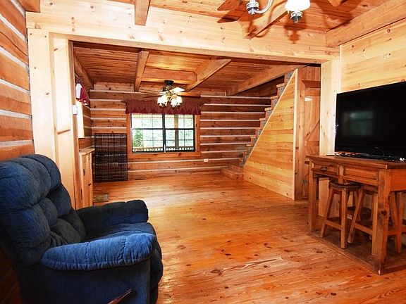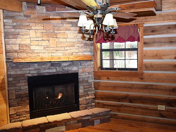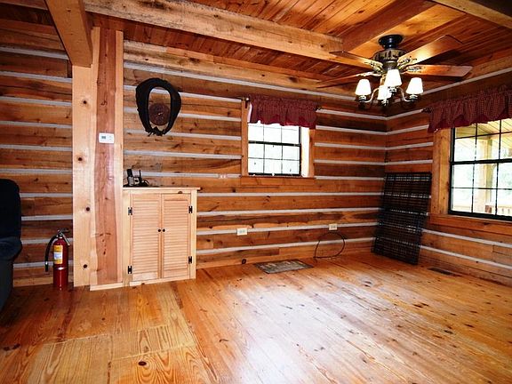 Have you dreamed of a getaway in the country?Fantastic Log home on a hilltop surrounded by woods. Your worries will melt away when you return home to Rustic luxury! Covered Porches assure a steady breeze. Inside the kitchen is large and opens to the Dining room with the first of 3 fireplaces. Large Great-room for the big game day parties. Master and guest bedrooms are on separate levels for privacy. Full Bath on each level. Outside there is a small cabin with a window unit and a general store/ shop building. there is also a storage building for tools and a mower. Lots of covered porch and patio space makes this a great home for entertaining friends or just relaxing.