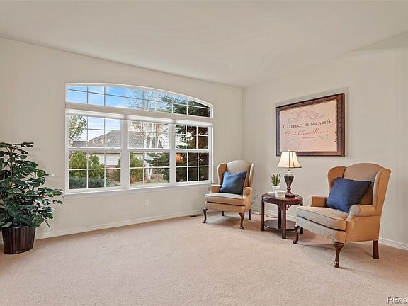 Welcome to this stunning home that backs to the golf course in desirable Saddle Rock Golf Club South neighborhood! This light, bright home is on a cul-de-sac with parking for guests. You feel welcomed as you walk in the entry way to an open floorplan with formal living and dining rooms, butler pantry, gourmet kitchen with granite countertops, large island and family room. Enjoy the main floor primary bedroom with fireplace, large bathroom and access to the patio. Upstairs is an additional 4 bedrooms and 2 full bathrooms. Two of the bedrooms open to a covered balcony to relax and enjoy the views. The full finished basement provides a very large great room area, 2 additional large bedrooms, a full bathroom and a bonus room that can be used for a media room, workout room or play room. Outdoors enjoy the beautifully landscaped yard from your patio and the views of the golf course. The community offers a clubhouse, pool, tennis courts and trails. This well maintained property has a newer furnace, humidifier, hot water heater and roof. Located with extraordiary convenience to desirable Cherry Creek Schools, parks, shopping, restaurants, and airport. This home is ready for you to move in today!