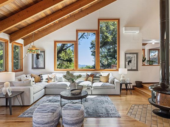 Come Home, Relax and Nourish your Spirit with Emotional Monterey Bay Views, Rare High Speed Internet, Large Square Footage/Living Spaces, High Quality Construction all within the highly coveted Firewise/Firesafe Las Cumbres Community. Gorgeous High open beam ceilings, plenty of glass allows natural light and inspiring views to pour in. Open concept living in nature, dining, kitchen spaces are seamlessly shared. New carpet and paint in the primary suite. Bonus second living room with cozy wood burning stove. Downstairs bed/bath, bonus rooms and separate entry, previously rented. Bonus flat pad on lot, perfect for additional parking, possibly detached ADU? Generous deck space for outdoor entertaining, hot tub hook-up. Landscaped yard, oversized 2 car garage, bonus tub in garage for EZ pet washing. Explore the spectacular 1,200+ acres of conservation land and miles of private trails, spring-fed creeks, redwoods or enjoy the community garden, bocce/basketball/tennis courts, pool, and playground. Castle Rock State Park and Numerous Wineries nearby. Coveted/rare Madrone high speed Fiber-optic, Mutual Water Company - no well to maintain, Santa Cruz County Fire Station in the Community, PGE Power lines underground. Back-Up Generator. Los Gatos /Saratoga JUHSD, 20 minutes to downtown LG