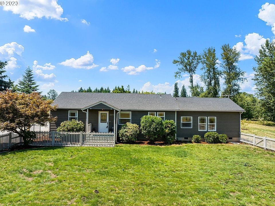 This Ridgefield Homestead awaits its new owner. Beautifully remodeled ranch home situated on a picturesque 5-acre property. This charming residence boasts numerous features that make it an ideal country retreat. Step inside and be greeted by a vaulted family room adorned with knotty pine paneling and a cozy wood stove resting on a river rock hearth, creating a warm and inviting ambiance.Check out your extra-large country kitchen, which has undergone an impressive transformation. This kitchen is both functional and visually stunning. The property itself is a nature lover's paradise. As you explore, you'll discover a seasonal pond nestled amidst the trees, a perfect spot for relaxation and reflection. There's also a horse pasture and an animal barn, catering to those with equestrian interests. Additionally, a massive shop provides ample storage and workspace for various hobbies or business ventures. The three-bay RV garage and generous RV parking area ensure that all your vehicles and recreational vehicles are accommodated with ease.For those concerned about safety and privacy, the property is fully fenced, cross-fenced, and even features a picket fence at the front and back of the house, adding a touch of charm to the overall aesthetic. In terms of layout, the house offers three bedrooms and two bathrooms, including a master bedroom with a soaking tub, providing a relaxing retreat at the end of the day. This home offers not only a serene countryside setting but also convenient access to major freeways, making commuting a breeze. Don't miss the opportunity to make this Ridgefield Homestead yours-experience the beauty and tranquility that awaits you.