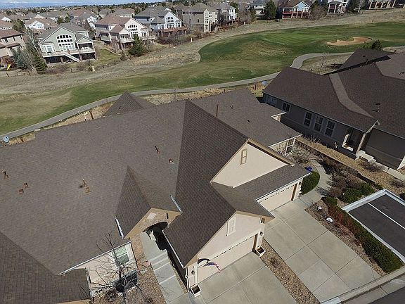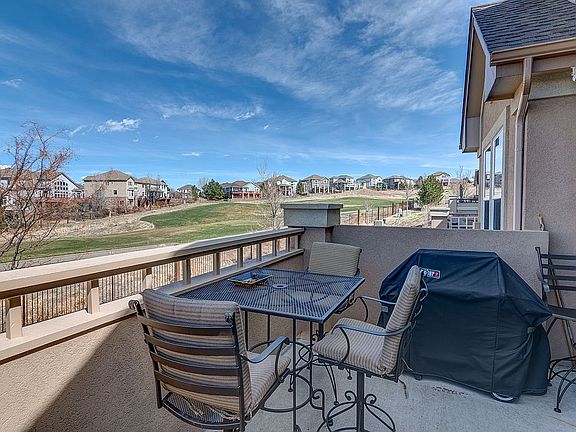 One owner patio home with unobstructed, elevated views of 9th tee at the Saddle Rock Golf Club. A True "Lock and Leave" Property. Lawn irrigation, lawn mowing, gutter cleaning, bush trimming, weed removal, all snow shoveling and exterior maintained by HOA. Super clean Rare Antilles dual master bedroom model with 2 additional bedrooms and three full baths. Solid hickory wood floors on the main level, solid wood plantation shutters, walk-in closets and plenty of storage. Gourmet kitchen outfitted with stainless steel appliances, solid granite countertops, 42" kitchen cabinets with pull out shelving. Inclusions: Patio furniture, Flat screen TV in upstairs living room, all kitchen appliances, washer and dryer and extra refrigerator in garage. Unlike an end unit, this mid unit seasonally provides even heating and cooling without expending additional utility costs. The quality of the build, solid construction and insulation between units makes each unit whisper quiet! This is a well built, one of a kind ranch patio home loaded with upgrades. Spectacular sunsets on the course and dramatic views of the Colorado Rocky Mountains. Enjoy your deck all day long with the electric Sun Setter awning. Absolute luxury. Mountain, water and golf course views.