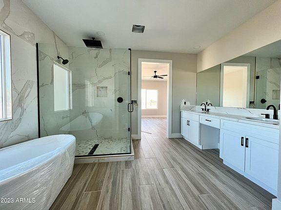 The perfect home built with you in mind! Just a 10 minute drive to i10 west. This beautiful modern ranch style home features upgraded porcelain tile throughout, quartz countertops, 2 tone paint and cabinets with stainless steep appliances. EV high voltage charger, smart IQ garage system, oversized patio, imported wrought iron doors. Detailing an open split floor plan with jack and jill restroom and walk in closets in all bedrooms. Sitting on over an acre with horse privileges, city water services and NO HOA. The list goes on and on! Tour this home today!