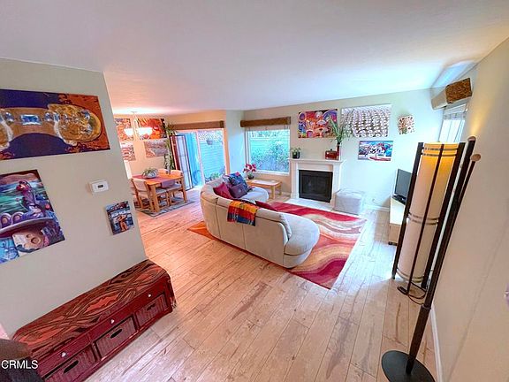 Gas fireplaceSpacious primary suiteDetached two-car garageNewly rebuilt patioWood-like floorsOpen dining areaComfortable living space